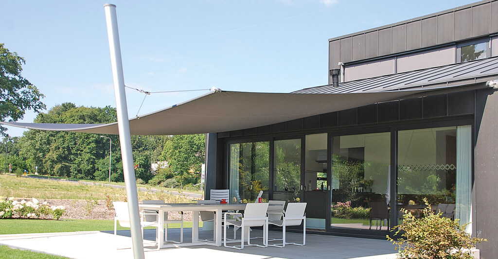 Soliday XS | Produkte | EM Sonnenschutz Bild - Das Sonnensegel SOLIDAY-XS besticht durch seine puristische Formgebung, innovative Technik und Design.